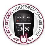 Điều khiển điện tử nằm trên tay cầm với hai chức năng: đun sôi ở 4 mức nhiệt độ khác nhau tùy nhu cầu sử dụng (60°, 70°, 80°, 90°).