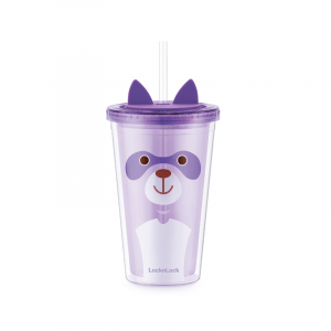 HAP512GRP – Ly nhựa 2 lớp LocknLock Animal 520ml in hình gấu trúc – Màu tím thẫm