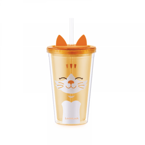 HAP512YEL – Ly nhựa 2 lớp LocknLock Animal 520ml in hình mèo – Màu vàng