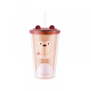 HAP511BRW – Ly nhựa 2 lớp LocknLock Animal 520ml in hình khỉ – Màu nâu