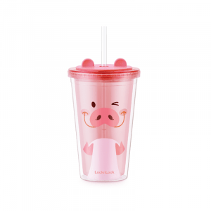 HAP511PIK – Ly nhựa 2 lớp LocknLock Animal 520ml in hình heo – Màu hồng