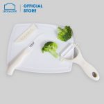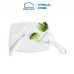 CKK503WHT – Bộ dao nhà bếp 4 món Lock&Lock Cookplus bằng sứ, nhựa (dao 3″ + nắp đậy, dao bào, thớt) – màu trắng