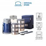 Bộ hộp cơm giữ nhiệt LOCK&LOCK EASY CARRY 2.0L, 720ml*1, 420ml*2, bộ muỗng và nĩa*1, túi đựng*1 – Màu trắng LHC8039WHT