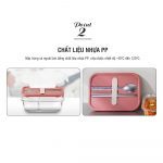 – Bộ muỗng đũa đi kèm làm bằng chất liệu thép không gỉ 304 và được đặt trong nắp hộp và có miếng đệm Silicone để cố định vị trí .