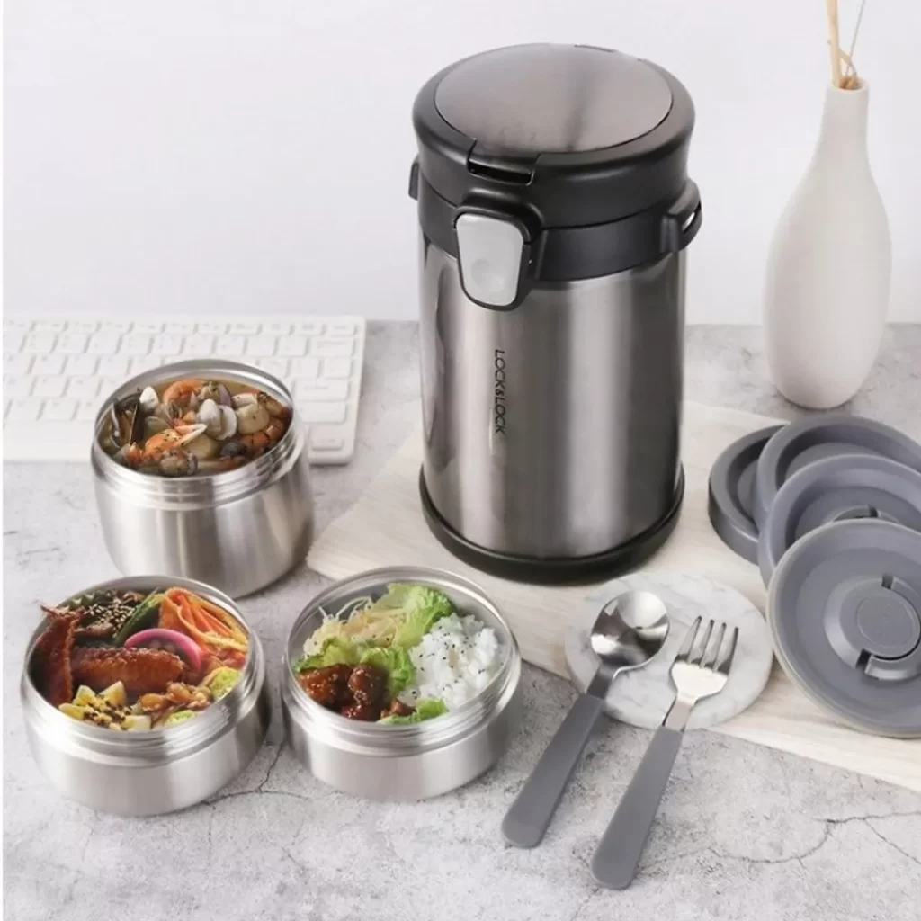 – Bộ hộp cơm giữ nhiệt Easy Take Lunch Box Lock&Lock LHC8034 có thân bình được làm từ thép không rỉ cao cấp. Chất liệu này không bị ăn mòn, không thôi nhiễm chất độc vào thực phẩm, cực kỳ an toàn cho sức khỏe của gia đình bạn.