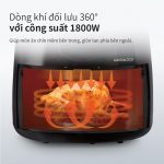 – Không đặt bất cứ vật gì lên trên thiết bị. Điều này làm gián đoạn luồng không khí và ảnh hưởng đến chất lượng rán món ăn.